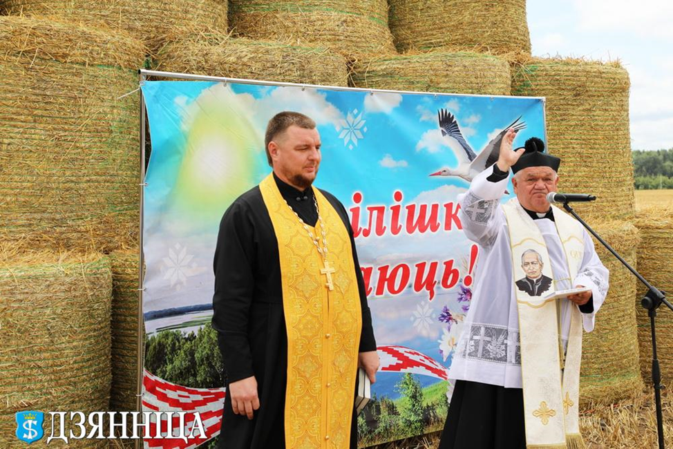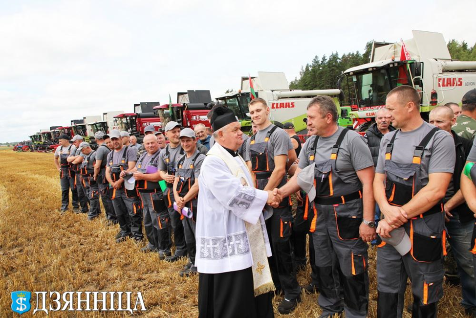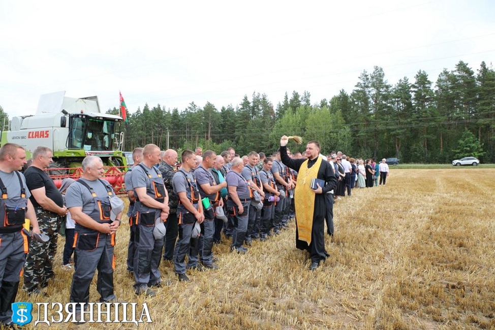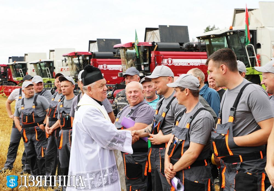 Как принято в народных традициях, священник Александр и отец Станислав помолились и благословили всех на новый урожай, здоровье и благополучие, а также окропили святой водой технику, поля и механизаторов, которые будут убирать выращенный хлеб.